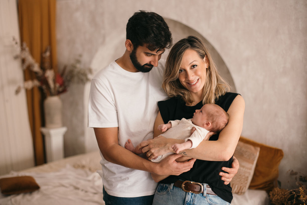 En este tipo de sesiones de recién nacido no es necesario que tu bebé esté dormidito. Realizaremos fotitos de tu bebé solo, despierto o dormido y también nos centraremos en capturar los momentos en familia, los cuales cobrarán un valor incalculable a medida que pase el tiempo y veas lo rápido que crece tu bebé.
